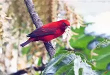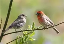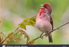 普通朱雀是雀形目雀科朱雀属鸟类,又名红朱雀、马料、青麻料。雄鸟上体红色,下体淡红色;头部、喉部、胸部及腰部亮红色;背部褐色染红色;两翼及尾黑褐色,羽缘染红色。雌鸟上体橄榄褐色,下体近白色,…全部>>