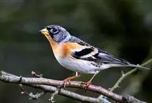 燕雀属小型鸟类,体长14-17厘米。嘴粗壮而尖,呈圆锥状。雄鸟从头至背辉黑色,背具黄褐色羽缘。腰白色,颏、喉、胸橙黄色,腹至尾下覆羽白色,两胁淡棕色而具黑色斑点。两翅和尾黑色,翅上具白斑。…全部>>