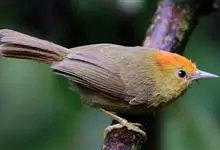 金头穗鹛小型鸟类,体长10~11厘米,是一种黄色小鸟。头顶金黄色有黑色纵纹,眼先黑色,在头、颊和耳羽金黄色的衬托下亦甚醒目。上体橄榄黄色,下体亮黄色,腹和两胁沾绿。…全部>>