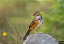 斑胸钩嘴鹛是雀形目、画眉科、钩嘴鹛属的鸟类。体型略大的钩嘴鹛。无浅色眉纹,脸颊棕色。甚似锈脸钩嘴鹛但胸部具浓密的黑色点斑或纵纹。栖息于低山地区及平原的林地灌丛间,在林间作短距离飞翔。…全部>>