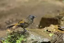 蓝翅噪鹛:噪鹛科、彩翼噪鹛属动物。中型鸟类,体长22-25厘米。上体棕橄榄褐色密被黑色鳞状斑,眼蓝白色,眼上有一长而宽阔的黑色眉纹,从眼先直到颈侧。下体棕褐色被黑色鳞状斑;尾上和尾上覆羽栗色,…全部>>