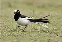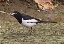 日本鹡鸰:体长约20厘米。上体多黑色,额、颏及眉纹白,下体白,两翼黑而具白色横斑及羽缘,尾黑而边缘白色。虹膜深褐色;嘴黑色;脚黑色。飞行时发出嘁喳声,具复杂而独特的鸣声。喜农田、稻田和溪流。…全部>>