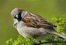 家麻雀:共有13个亚种。是小型鸟类,体长14-16厘米。背栗红色具黑色纵纹,两侧具皮黄色纵纹;颏、喉和上胸黑色,脸颊白色,其余下体白色,翅上具白色带斑。雄鸟与树麻雀的区别在顶冠及尾上覆羽灰色,耳无黑…全部>>