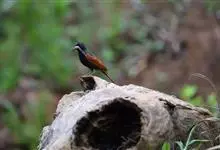 凤头鹀:属小型鸣禽,体重21-31克,体长134-175毫米。以头顶的细长羽冠为特征,雄鸟全身几乎均为黑色具蓝色光泽,两翅和尾以及尾上覆羽栗红色。雌鸟具短的褐色羽冠,上体暗橄榄褐色,…全部>>
