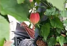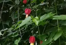 红萼苘麻是锦葵科、苘麻属常绿软木质灌木,叶绿色,长5-10厘米,心形,叶端尖,叶缘有钝锯齿,有时分裂,有细细的叶柄;叶互生,掌状叶脉;花单生于叶腋,具长梗,下垂;花萼红色,半套着大约4厘米长的花瓣,…全部>>