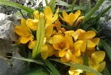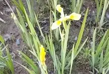 黄花鸢尾:多年生草本,植株基部有老叶残留的纤维。根状茎粗壮,斜伸;须根黄白色,少分枝,有皱缩的横纹。叶基生,灰绿色,宽条形,有3-5条不明显的纵脉。花茎中空,高50-60厘米,…全部>>