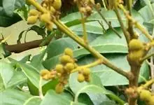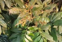 龙眼,是无患子科龙眼属下的一种大型常绿乔木,又名桂圆、圆眼、羊眼果树等。龙眼小枝粗壮,被微柔毛,散生苍白色皮孔;叶片薄革质,长圆状椭圆形至长圆状披针形;花序大型多分枝,顶生和近枝顶腋生,…全部>>