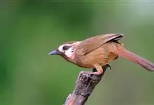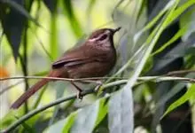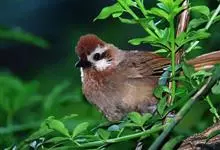 白颊噪鹛是雀形目噪鹛科噪鹛属鸟类,又称土画眉、小画眉、小噪鹃。成鸟额至头顶栗褐色,长眉纹、眼先和颊纹棕白色,眼后至耳羽深褐色,…全部>>