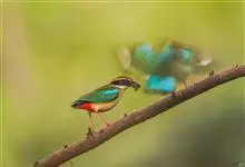 蓝翅八色鸫是雀形目八色鸫科的鸟类。体长17-20厘米,体重类约48-70克,体型圆胖,尾短,腿长,以身体具有红、绿、蓝、白、黑、黄、褐、栗等鲜艳夺目,丰富艳丽的色彩而得名,是很有观赏价值的鸟类。主要…全部>>