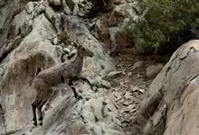 岩羊是偶蹄目牛科岩羊属哺乳动物。颜色与岩石相像,两性皆具角,雄羊角大而弯曲,角外表具不明显的横棱且体壮实,雌羊角短小;头较小,眼大,耳小,颏下无须;体背面为棕灰或石板灰色略有蓝色反光,…全部>>