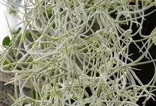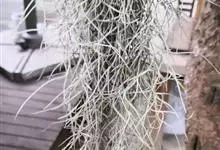 老人须 L.)是凤梨科、铁兰属植物。多年生气生或附生草本植物。植株下垂生长,茎长,纤细,植株长可以达到1-1.5米。叶片互生,半圆形,长3-4厘米,密被银灰色鳞片。小花腋生,黄绿色,花萼紫色,…全部>>