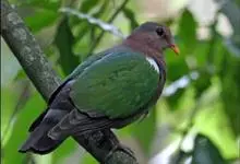 灰林鸽,为鸠鸽科、鸽属的鸟类。灰林鸽体型中等,体长35-40厘米,头灰色、喉中央白色,颈部有淡肉黄色鳞状斑形成的颈环。上背黑褐色,具绿紫色金属光泽,下背至尾黑色。胸灰褐色,腹暗黄色,尾下覆羽皮黄色,…全部>>