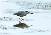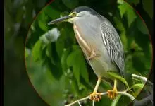 绿鹭:是鹳形目鹭科绿鹭属鸟类。体型小,头顶黑,枕冠亦黑色,上体蝉灰绿色,下体两侧银灰色;前额至后枕及冠羽墨绿色,眼后有一白斑,颊纹黑色;颚纹白色,后颈、颈侧和体侧烟灰色;背部披灰绿色矛状长羽,…全部>>