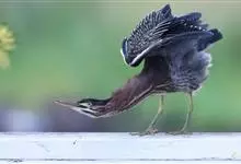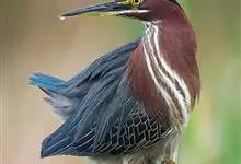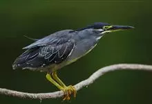 绿鹭:是鹳形目鹭科绿鹭属鸟类。体型小,头顶黑,枕冠亦黑色,上体蝉灰绿色,下体两侧银灰色;前额至后枕及冠羽墨绿色,眼后有一白斑,颊纹黑色;颚纹白色,后颈、颈侧和体侧烟灰色;背部披灰绿色矛状长羽,…全部>>