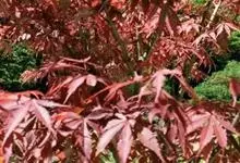 红枫,园艺种,槭树科槭属落叶小乔木,高5~8 m;树冠伞形,枝条开张,细弱。单叶对生,近圆形,薄纸质,掌状7~9深裂,裂深常为全叶片的1/2~1/3,基部心形,裂片卵状长椭圆形至披针形,先端尖,…全部>>