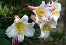 麝香百合:在中国台湾亦称铁炮百合。鳞茎球形或近球形,高2.5-5厘米;鳞片白色。茎高45-90厘米,绿色,基部为淡红色。叶散生,披针形或矩圆状披针形,两面无毛。花单生或2-3朵;花喇叭形,白色,筒外…全部>>