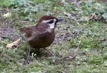 白颊噪鹛是雀形目噪鹛科噪鹛属鸟类,又称土画眉、小画眉、小噪鹃。成鸟额至头顶栗褐色,长眉纹、眼先和颊纹棕白色,眼后至耳羽深褐色,…全部>>