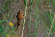 画眉,是雀形目噪鹛属一种鸣禽,别名为文武鸟、金画眉。成年画眉体长为21~25cm,体重为49~75g,眼周具一圈白色羽毛,并向眼后延伸形成一条显著的白色眉纹;上体覆羽呈卡其色,飞羽为暗褐色,…全部>>