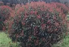 石楠 Kalkman),是蔷薇科石楠属的常绿乔木,高5~12米,株型紧凑,树冠圆球形。树枝为褐灰色;鳞片为褐色,没有毛;叶片革质,长椭圆至侧卵状椭圆形,有锯齿,新叶红色光亮。复伞房花序,白色小花,…全部>>