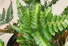 骨碎补,骨碎补科骨碎补属蕨类植物。植株高25-40厘米,根状茎,且茎为粗壮肉质,表面附着钻状披针形鳞片,有绿毛;叶子为灰棕色,槲叶状,基部心形,背面有短毛,边缘有粗浅裂;多年生草本植物,…全部>>