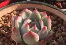 吉娃莲,景天科拟石莲花属,别名:吉娃娃,吉娃莲,植株小型,无茎的莲座叶盘非常紧凑。卵形叶较厚,带小尖,蓝绿色被浓厚的白粉,叶缘为美丽的深粉红色。花序先端弯曲,钟状,红色。栽培不太困难,…全部>>