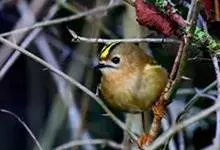 戴菊小型鸟类,体长9~10厘米。上体橄榄绿色。头顶中央柠檬黄色或橙黄色羽冠,两侧有明显的黑色侧冠纹,眼周灰白色。腰和尾上覆羽黄绿色,两翅和尾黑褐色,尾外翈羽缘橄榄黄绿色,初级和次级飞羽羽缘淡黄绿色,…全部>>
