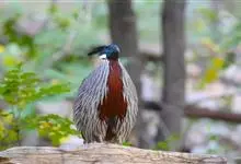红腹角雉属于鸡形目雉科,雄鸟体羽及两翅主要为深栗红色,满布具黑缘的灰色眼状斑,下体灰斑大而色浅。雌鸟上体灰褐色,下体淡黄色,杂以黑、棕、白斑。全部>>