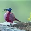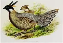 血雉雉科血雉属鸟类,别名血鸡、松花鸡,血雉的雄鸟大覆羽、尾下覆羽、尾上覆羽、脚、头侧、腊膜为红色,故称血雉。其别名甚多,各地皆异。在甘肃,因其胸侧和翅上覆羽沾绿,被称为“绿鸡”;因其羽毛形似柳叶,…全部>>