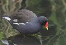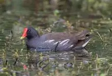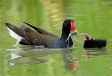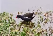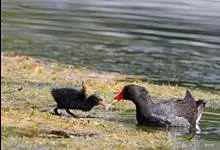 黑水鸡:是鹤形目、秧鸡科的鸟类,共有12个亚种。中型涉禽,体长24-35厘米。嘴长度适中,鼻孔狭长;头具额甲,后缘圆钝;嘴和额甲色彩鲜艳。翅圆形,第2枚初级飞羽最长,或第2枚和第3枚初级飞羽等长,…全部>>