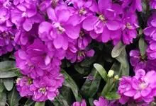 紫罗兰 W.T.Aiton)是十字花科紫罗兰属植物。二年生或多年生草本。植株高60厘米,布满灰白色的分枝柔毛;茎直立,多分枝,基部稍木质化;叶片为长圆形、倒披针形或匙形;总状花序顶生和腋生;花多数,…全部>>