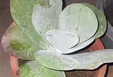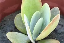 唐印为景天科伽蓝菜属的多年生肉质草本植物。植株中型,株高50厘米,宽20厘米,多分枝;叶片肉质,对生,卵形,全缘,先端钝圆,叶片淡绿色至灰绿色,表面被有厚厚的白粉,光照充足时,叶缘呈红色;圆锥花序,…全部>>