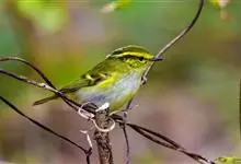 极北柳莺:体长11-13厘米,体小偏灰橄榄色,具明显的黄白色长眉纹,眼先及过眼纹近黑。上体概呈灰橄榄绿色;具甚浅的白色翼斑,大覆羽先端黄白色,形成一道翅上翼斑;中覆羽羽尖成第二道模糊的翼斑;下体白色…全部>>