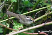 褐胁雀鹛,是莺科、雀鹛属的鸟类。褐胁雀鹛是小型鸟类,体长13-15厘米。头顶棕褐色,黑色侧冠纹和宽阔的白色眉纹,眼先黑色。上体包括两翅和尾橄榄褐色。颏、喉、胸、腹白色,腹和胸沾皮黄色,两胁橄榄褐色,…全部>>
