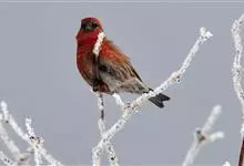藏朱雀:全长约17-18厘米。雄鸟头部深红色具光辉,喉部暗红色具白色点斑;背部灰白色,各羽具玫瑰红色羽端,形成许多斑纹;腰部淡玫瑰红色;翅暗褐色,沾灰白,羽端沾玫瑰红或灰白色;尾暗棕色,端缘玫瑰红色…全部>>