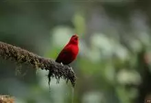 血雀雀科朱雀属鸟类,体重36-49克;体长155-182毫米。雄鸟除眼先、翼与尾为黑色外,通体为鲜红色;嘴鲜黄;雌鸟暗橄榄绿色,羽端较淡或带黄色;腰鲜黄;嘴较暗。虹膜褐色;嘴黄色;腿和脚褐色。…全部>>