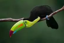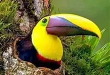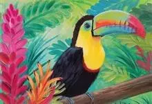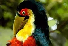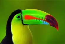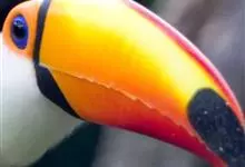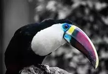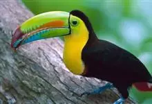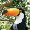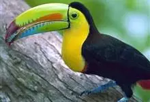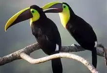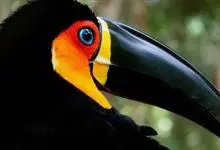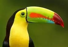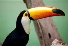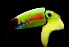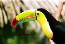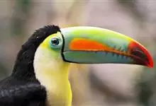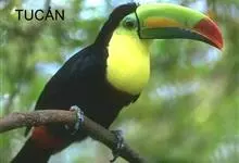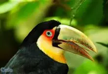 鵎鵼:又名巨嘴鸟。体长约67厘米,嘴巨大,长17~24厘米,宽5~9厘米,形似嘴刀。嘴非常漂亮,上半部黄色,略呈淡绿色,下半部呈蔚蓝色,喙尖点缀着一点殷红。眼睛四周镶嵌着天蓝色羽毛眼圈,胸脯橙黄色,…全部>>