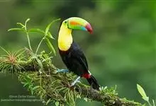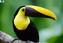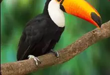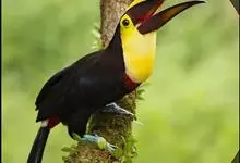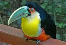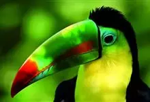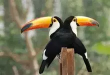鵎鵼:又名巨嘴鸟。体长约67厘米,嘴巨大,长17~24厘米,宽5~9厘米,形似嘴刀。嘴非常漂亮,上半部黄色,略呈淡绿色,下半部呈蔚蓝色,喙尖点缀着一点殷红。眼睛四周镶嵌着天蓝色羽毛眼圈,胸脯橙黄色,…全部>>