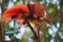大极乐鸟是极乐鸟属中最大的鸟种。成年雄鸟体长可达到43厘米,雌性可达35厘米。雄鸟的额、颊、喉等墨绿色;头、颈黄色;上体暗赤栗色;腹部葡萄红色,胁部有长饰羽,其基部橙黄,中部黄色,…全部>>