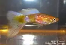 孔雀花鳉 ,俗名孔雀鱼,也称为凤尾鱼、彩虹花鳉、虹鳉、古比鱼等,是花鳉科花鳉属的一种热带鱼,雌雄鱼的体型和色彩差别较大,成年雄鱼身体瘦小,体长3-4厘米,体色绚烂多彩、体型优美;成年雌鱼体长5厘米…全部>>