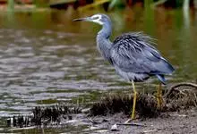 白脸鹭:体长60-70厘米,体重550克。成鸟相对其他鹭科鸟类要小,正如它的名字,很容易通过白脸鹭的蓝灰色身体和独特的白脸来识别。嘴长而尖直,翅大而长,脚和趾均细长,胫部部分裸露,脚三趾在前一趾在后,…全部>>