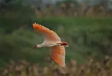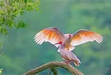 粉红琵鹭:体高87厘米,翼展127厘米,体重1300克,寿命10年。是一种大型涉禽。脚很长,喙长而呈竹片状。成鸟头部光秃及呈绿色,颈部、背部及胸部呈白色,其他的都呈深粉红色。喙呈灰色。雄鸟和雌鸟相似…全部>>