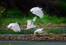 朱鹮是鹈形目鹮科朱鹮属的鸟类动物。其雄鸟通体白色,羽干及两翅与尾等均沾染粉红色;颈项上有很多长矛状羽毛,形成羽冠,耸立时非常夺目;嘴长而向下曲,呈黑色,先端朱红,脚的裸露部分亦呈亮红色。雌鸟羽色略同,…全部>>