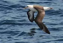 黑背信天翁:是一种中等体型的信天翁,81厘米长,体重2210-2800克,是一种有极长翼羽的大鸟,翅狭长,翼展195-215厘米。雄性略大。鼻孔侧位,不愈合。特征为自颏至臀部为全白色,但翼上及背深色…全部>>