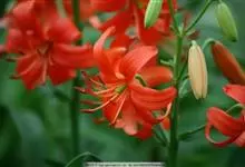 山丹是百合科百合属的多年生草本植物。鳞茎卵形或圆锥形,鳞片长圆形或长卵形,白色;叶散生茎中部,线形,边缘有乳头状突起;花单生或数朵成总状花序,花鲜红色,常无斑点,花被片反卷,…全部>>