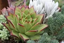 阿尔巴白月影是景天科、拟石莲花属的多年生植物、多肉植物,植株小型,叶片在阳光充足且具一定温差的适宜环境下呈通透的白色。在园艺育种中是优秀的亲本。全部>>