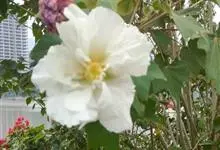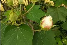 海滨木槿是锦葵科木槿属植物,落叶小乔木,株高3-5米,胸径20厘米,扁球形树冠,枝叶繁盛。厚纸质单叶互生,扁圆形、倒卵形或宽倒卵形,先端钝近平,具短突尖,基部圆形或浅心形,叶缘中上部具细圆齿,…全部>>