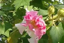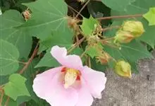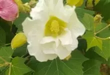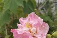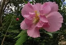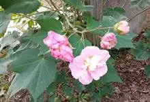木芙蓉,锦葵科木槿属落叶灌木或小乔木。小枝上有细绒毛;叶片为卵状心形,托叶为披针形,常早落;花单生,花萼为钟形,花冠初为白色或淡红色,后逐渐变为深红色;果实为扁球形,有淡黄色的毛附着。花期8到10月。…全部>>