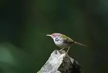 普通缝叶莺,是雀形目鹅科莺亚科缝叶莺属一种。体长10-14厘米,体重7-10克,雄鸟前额棕红,头顶至枕棕橄榄褐,上体橄榄绿染黄,飞羽及尾羽暗褐;繁殖期雄鸟的中央尾羽特形延长,下体淡皮黄白色。…全部>>