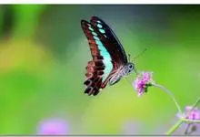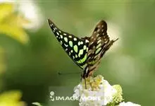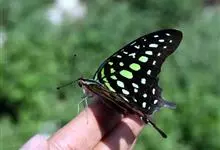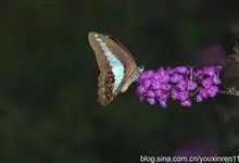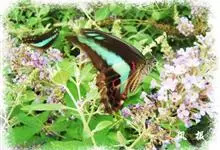 青带凤蝶Graphium sarpedon ,又名青凤蝶,是最普遍的中型凤蝶,飞行速度很快。青带凤蝶的翅膀中央有许多浅蓝色的斑点,很整齐地排列成一条直线。这些斑点由上而下逐渐变大,就像一条青色的带子。全部>>