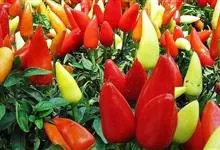 五色椒又名朝天椒,五彩辣椒,为辣椒 变种,味涩。属茄科多年生半木质性植物,常作一年生栽培;江苏沭阳一带有不少花农种植,其株高30厘米—60厘米,分枝多、茎直立,单叶互生;花白色,开花期5月初—7月…全部>>